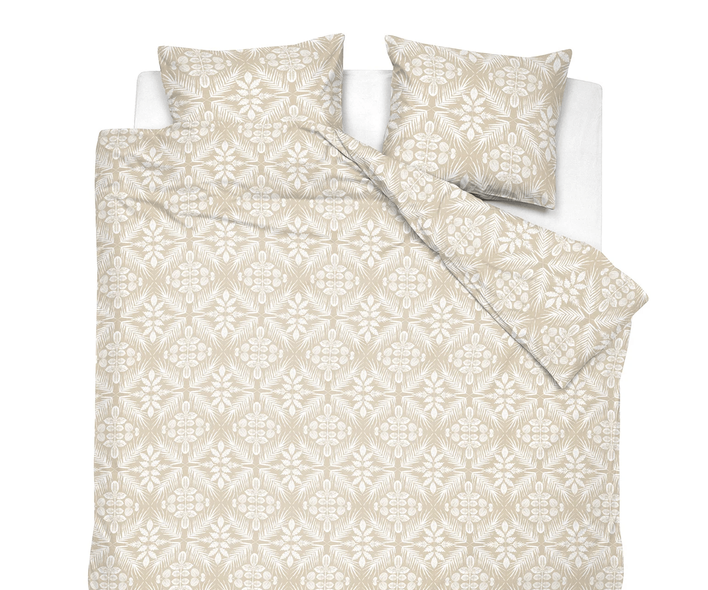 Het dekbedovertrek Momentum laat een combinatie zien van stijl en romantiek. Momentum heeft een subtiel patroon van bladeren met een vintage uitstraling en is uitgevoerd in een lichte amandel kleur. Met dit overtrek creëer je rust in een kleurrijk, etnisch romantisch interieur.
