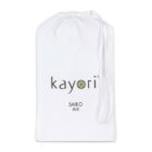 Kom heerlijk tot rust met dit heerlijke, zachte jersey-stretch topper hoeslaken van Kayori. Het hoeslaken is gemaakt van 95% jersey-katoen en 5% lycra, hierdoor is het lekker zacht en elastisch. Het hoeslaken heeft een speciale & 100% natuurlijke Aloë-Vera finishing waardoor het zijdezacht aanvoelt. Ideaal voor een netjes opgemaakt bed! Het hoeslaken is voorzien van een elastiek rondom, waardoor het gemakkelijk om het matras te bevestigen is. Het hoeslaken is geschikt voor topper matrassen met een hoogte tussen de 5 en 12 centimeter. Door de speciale ingeweven hoeken heeft het hoeslaken een perfecte pasvorm en zul je nooit last hebben van opstaande hoeken van het matras.